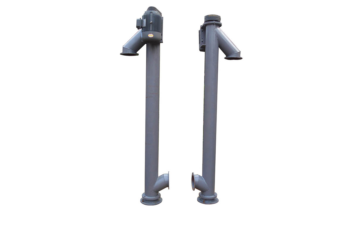 SZC系列垂直提升機(垂直輸送機)的驅(qū)動裝置振動電機安裝在輸送塔下部,兩臺振動電機對稱交叉安裝,輸送塔由管體和焊接在管體周圍的螺旋輸送槽組成,輸送塔座于減振裝置上,減振裝置由底座和隔振彈簧組成。當垂直輸送機工作時,根據(jù)雙振動電機自同步原理,由振動電機產(chǎn)生激振力,強迫整個輸送塔體作水平圓運動和向上垂直運動的空間復(fù)合振動,螺旋槽內(nèi)的物料則受輸送槽的作用,作勻速拋擲圓運動,沿輸送槽體向上運動,從而完成物料的向上(或向下)輸送作業(yè)。